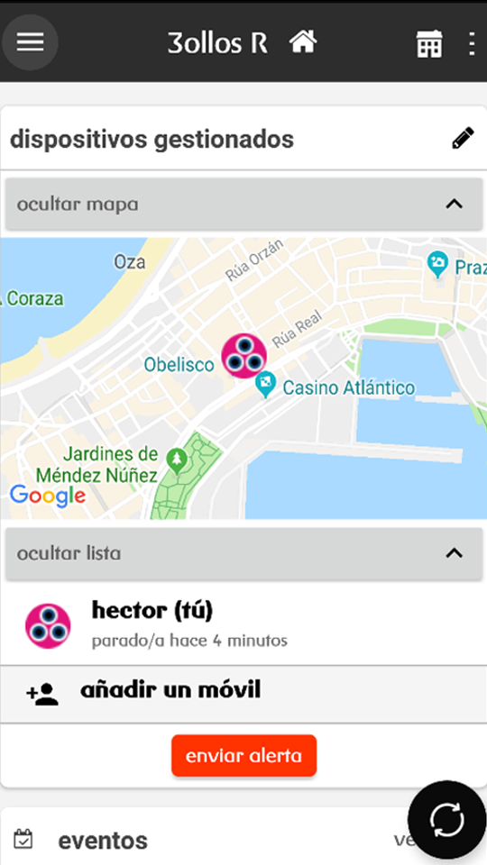 si eres administrador, podrás ver la ubicación de los administrados que tengan la aplicación de 3ollos R móbil y de aquellos administradores que hayan decidido compartir su ubicación.