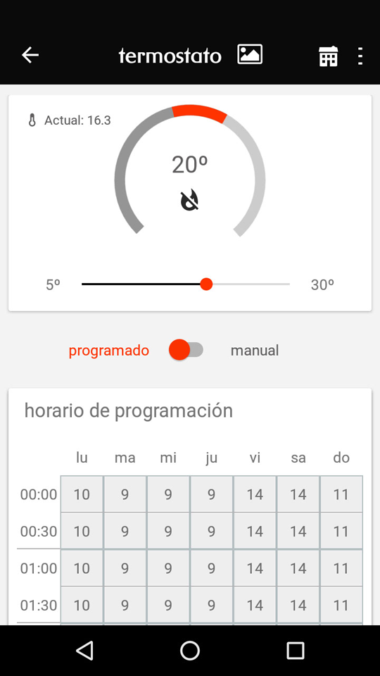 desplázate hacia abajo y marca la temperatura a tu gusto en “horario de programación”.